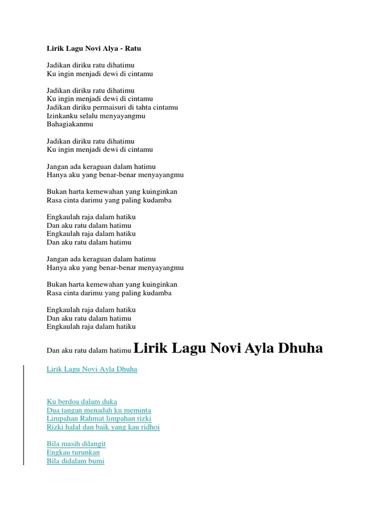 Lirik Lagu Dhuha Novi Ayla