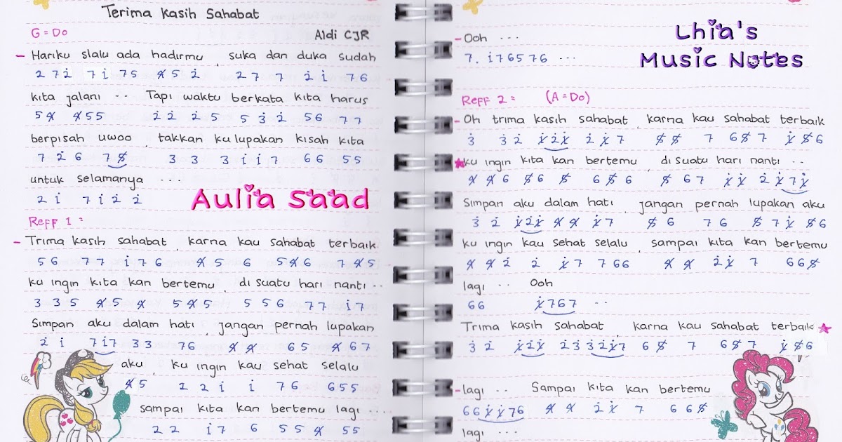 Not Angka Lagu Terima Kasih Sahabat Aldi Cjr Dan Not Pianika Terima Kasih Sahabat Aldi Cjr