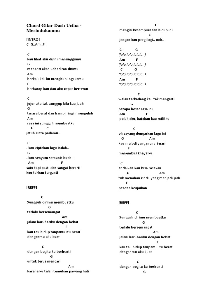 Dash Uciha Merindukanmu Guitar Chords Lyrics Kunci Gitar