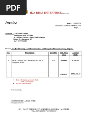 Invoice Nurul Job Cleaning Bungalow House
