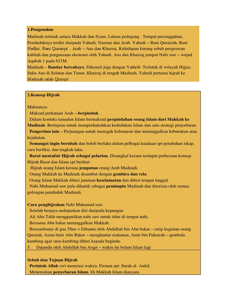Sebab dan tujuan hijrah. Ke madinah adalah disebabkan perintah allah menerusi wahyu. Ini menjadi cerminan diri kita juga bahwa setelah hijrah kaum muslim harus selalu bisa memenangkan setiap pertempuran dari perang pemikiran ekonomi politik militer dan sebagainya. Kata hijrah berasal dari bahasa arab yang artinya meninggalkan menjauhkan dari dan berpindah tempat. Sebab sebab rasulullah saw hijrah setelah meninggalnya istri rasulullah tercinta yaiu siti khadijah dan pamannya abu thalib yang selalu membela dan melindungi rasulullah saw dari ancaman kaum quraisy menambah beban rasulullah saw untuk berdakwah mengajarkan agama islam menjadi semakin berat.