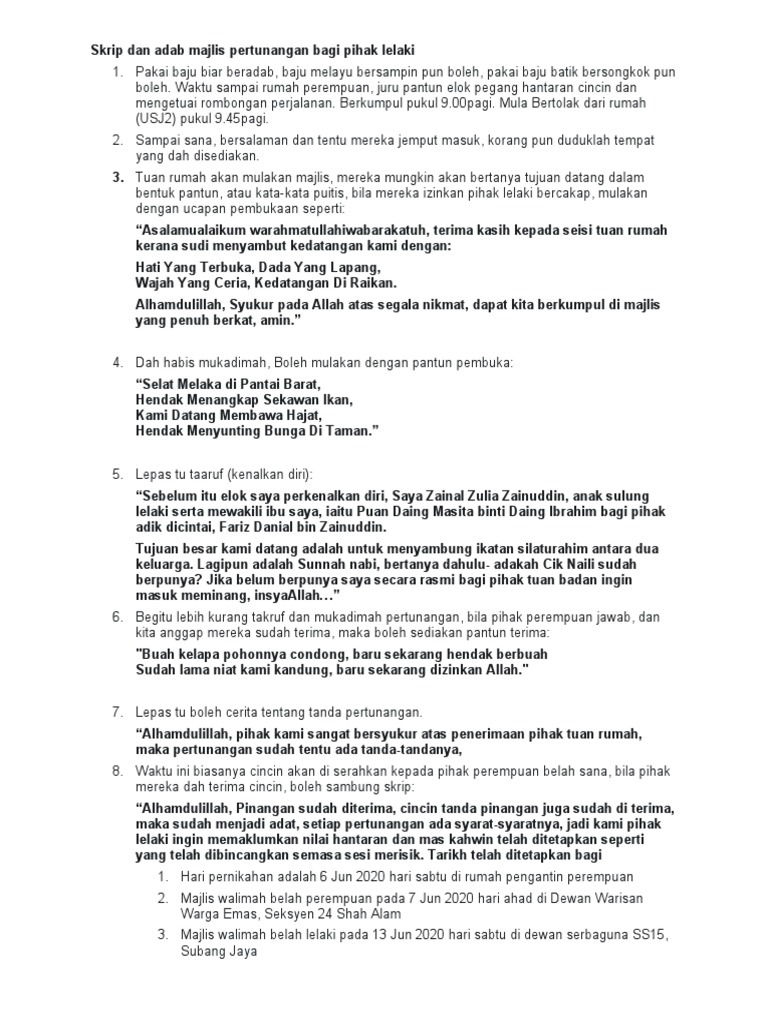Skrip Majlis Pertunangan Pihak Lelaki